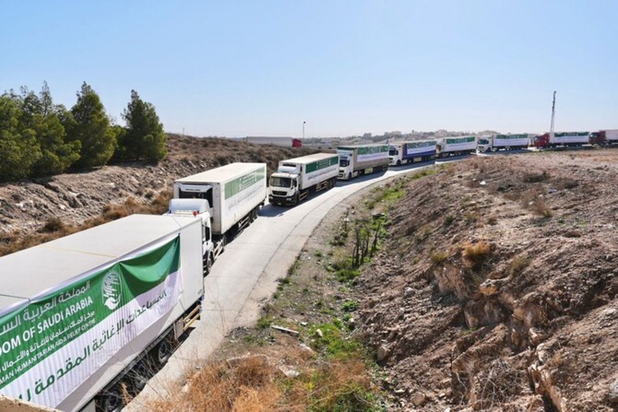 സൗദി; ട്രക്കുകളിൽ 541 ടണിലധികം ദുരിതാശ്വാസ വസ്തുക്കൾ സിറിയക്ക് കരമാർഗം സഹായമെത്തിക്കാൻ തുടങ്ങി